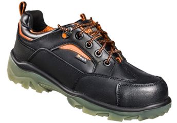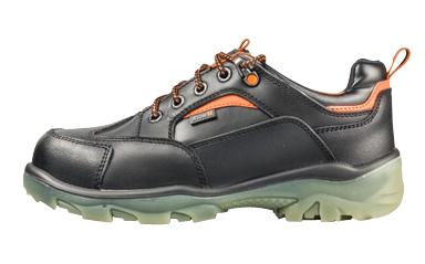 头层加厚光面牛皮,橙色点缀,双色双密度聚氨(TPU/PU)注塑鞋底。