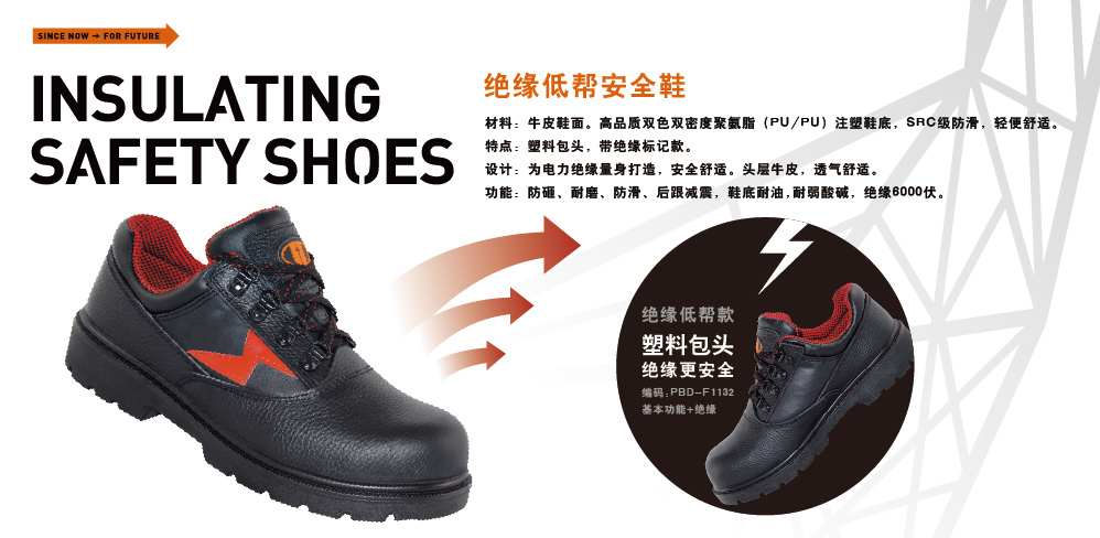 材料:牛皮鞋面。双色双密度聚氨脂(PU/PU)注塑鞋底,防滑,轻便舒适。 特点: 全塑非金属设计,带绝缘标记款,为电力绝缘量身打造,安全舒适。透气舒适。 功能:防砸、耐磨、防滑、后跟缓冲,鞋底耐油,耐弱酸碱,绝缘6000伏。